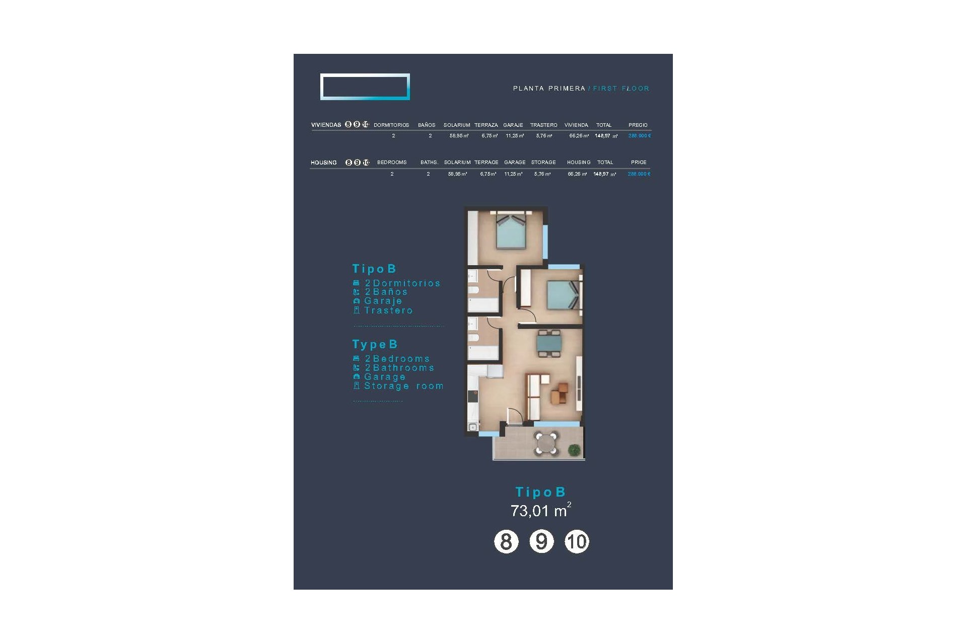 The interior of these homes is designed with a focus on quality and comfort. Porcelain tile floors add a modern and elegant touch to each space. The layout includes 2 bathrooms, ensuring convenience for all family members. The homes are equipped with built-in wardrobes, optimizing storage space. The pre-installation of air conditioning ensures a pleasant environment throughout the year. Additionally, the video intercom provides extra security and convenience. The inclusion of a private garage adds an additional level of convenience for residents.