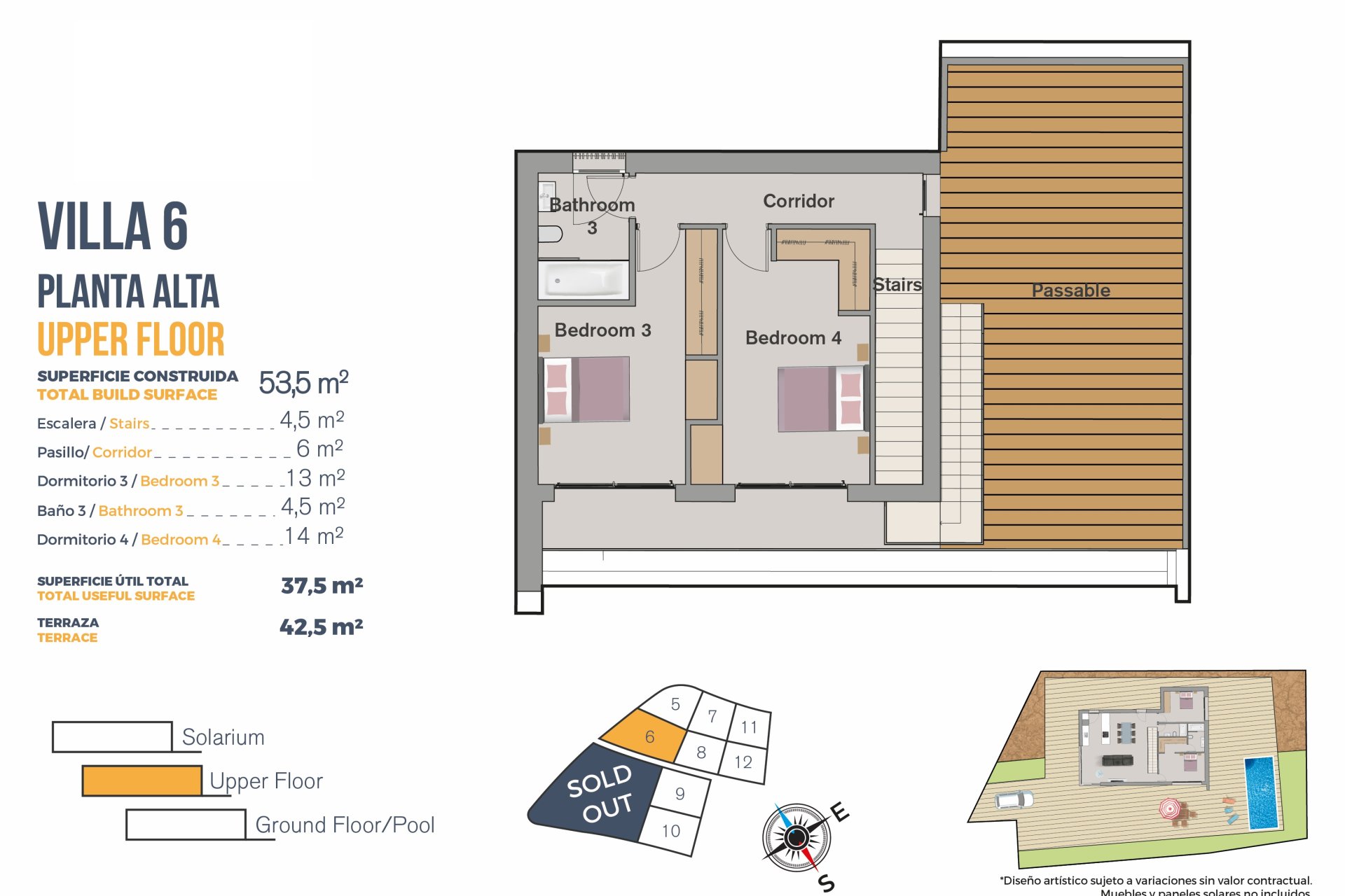 The interior of these detached homes is designed to maximize comfort and functionality. Ceramic floors provide a modern touch and are easy to maintain. The kitchen is equipped with high-quality appliances, making daily tasks easier. Electric shutters and a video intercom add an extra level of convenience and security. Built-in wardrobes offer efficient storage space, while the pre-installation of air conditioning allows for a pleasant temperature year-round.