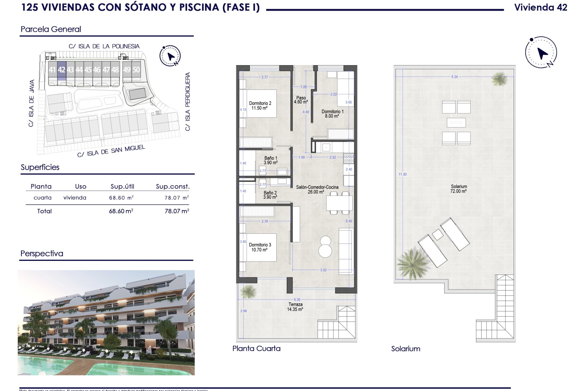 The outdoor environment of this residential is carefully designed to offer a space of tranquility and enjoyment. The garden areas provide a natural and relaxing setting, ideal for outdoor walks or enjoying a moment of reading under the sun. Additionally, residents can enjoy a community pool, perfect for cooling off during warm summer days. Ground floor properties feature private gardens, offering additional space for outdoor leisure, while penthouses have solariums that allow for panoramic views and enjoyment of the Mediterranean climate.