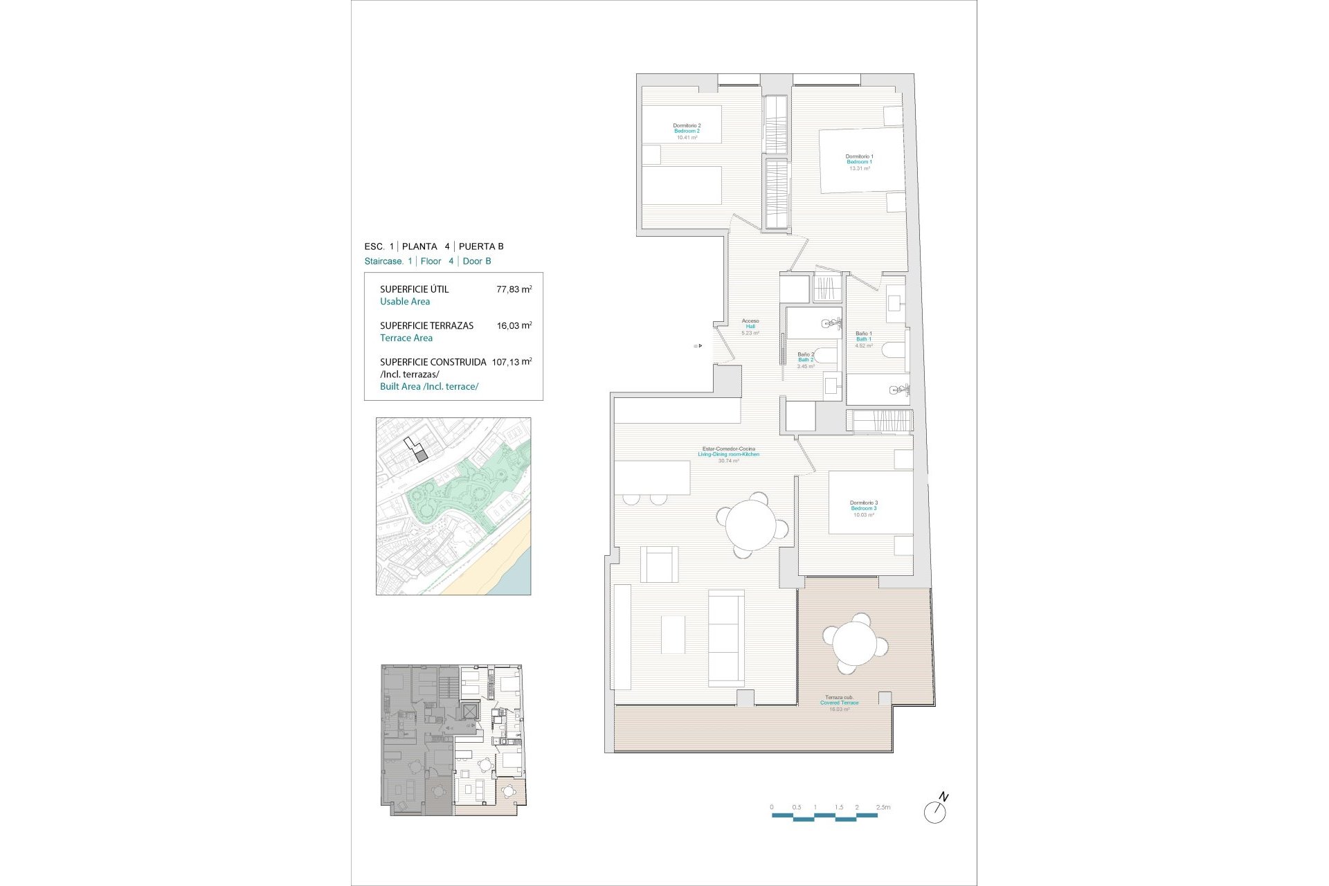 The interiors of the properties in this residential complex in La Vila Joiosa are designed to offer a welcoming and functional space. With options of 1, 2, and 3 bedrooms, and up to 3 bathrooms, each home adapts to different family needs. Laminate and porcelain tile floors provide an elegant and durable base, while the inclusion of home automation allows total control over the home's environment. Kitchens are equipped with modern appliances, facilitating daily life and allowing residents to enjoy a contemporary lifestyle. Built-in wardrobes offer efficient storage solutions, keeping spaces tidy and clutter-free. Every detail has been carefully considered to ensure that the interiors are both practical and aesthetically pleasing.