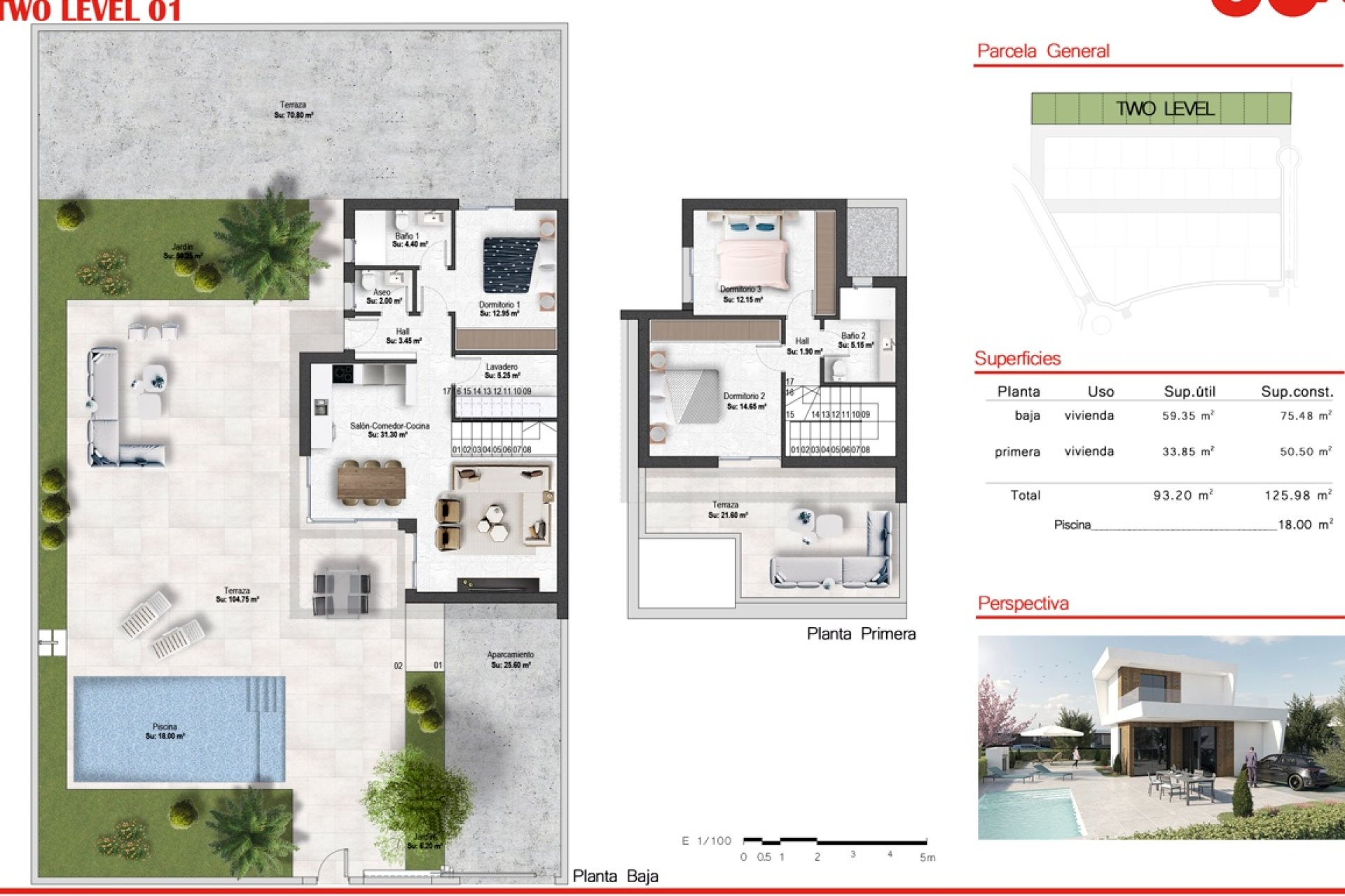 2Located in the charming region of Murcia, this residential complex offers 80 detached homes designed for those seeking a spacious and comfortable home. The location is ideal, with the airport just 6 kilometers away, facilitating travel and commutes. The homes are available in 2, 3, and 4-bedroom configurations, all with 2 bathrooms, catering to the needs of families of different sizes. The construction prioritizes comfort and functionality, ensuring that every space is maximized.
