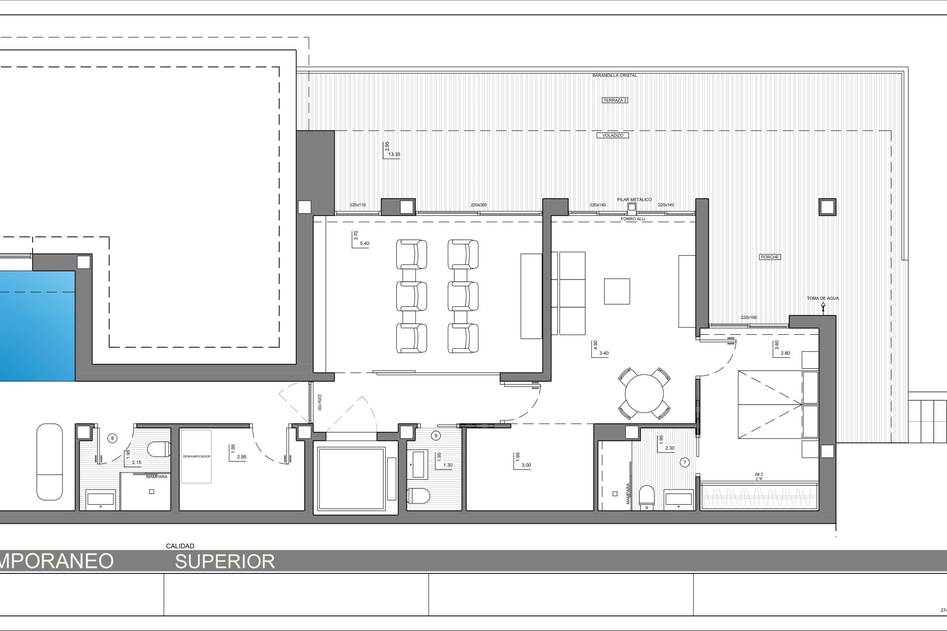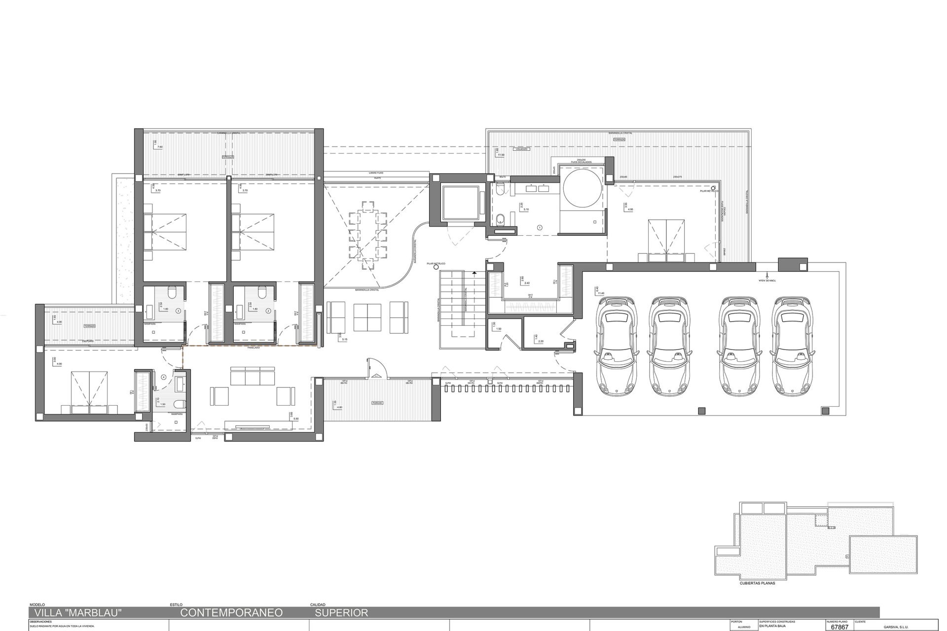 The exterior design of the villas in Cumbre del Sol is intended to maximize enjoyment of the Mediterranean climate. Each villa features a private garden and a spacious terrace, perfect for outdoor relaxation. Additionally, they have a private pool, ideal for cooling off on hot days. The villas are equipped with a jacuzzi and pergola, offering additional space for leisure and relaxation. The presence of a private garage ensures convenience and security for residents' vehicles.