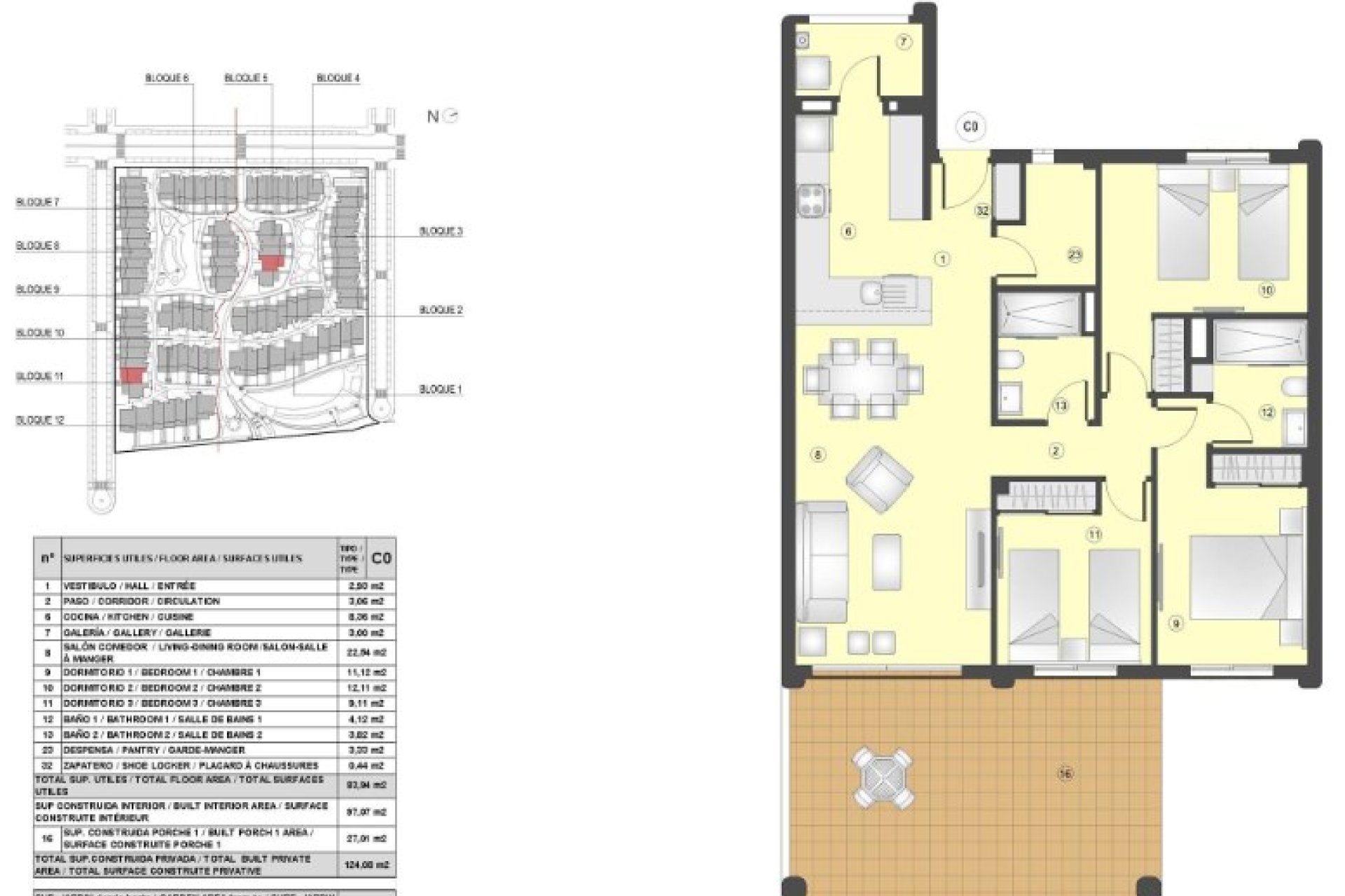 The interiors of the properties are carefully designed to offer comfort and functionality. Layout options include bungalows with 2 and 3 bedrooms, all with 2 bathrooms. Finishes include ceramic floors and underfloor heating, ensuring a cozy atmosphere year-round. The properties are fully furnished and equipped with modern appliances, air conditioning, and electric shutters. Built-in wardrobes offer efficient storage, while pre-installation for air conditioning ensures additional comfort. Additionally, some units feature a jacuzzi, providing an extra touch of luxury.