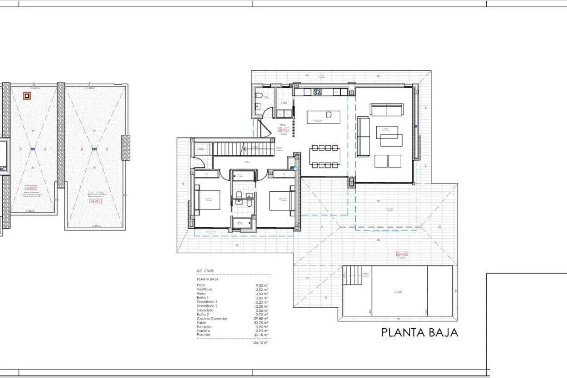 The interior of the villa is carefully arranged to offer comfort and functionality. With three bedrooms, this property is perfect for families or those needing extra space for guests. Each bedroom is equipped with built-in wardrobes, providing ample storage space. The villa has three bathrooms, ensuring comfort and privacy for all occupants. Additionally, the property includes a garage, offering a secure parking space for vehicles.