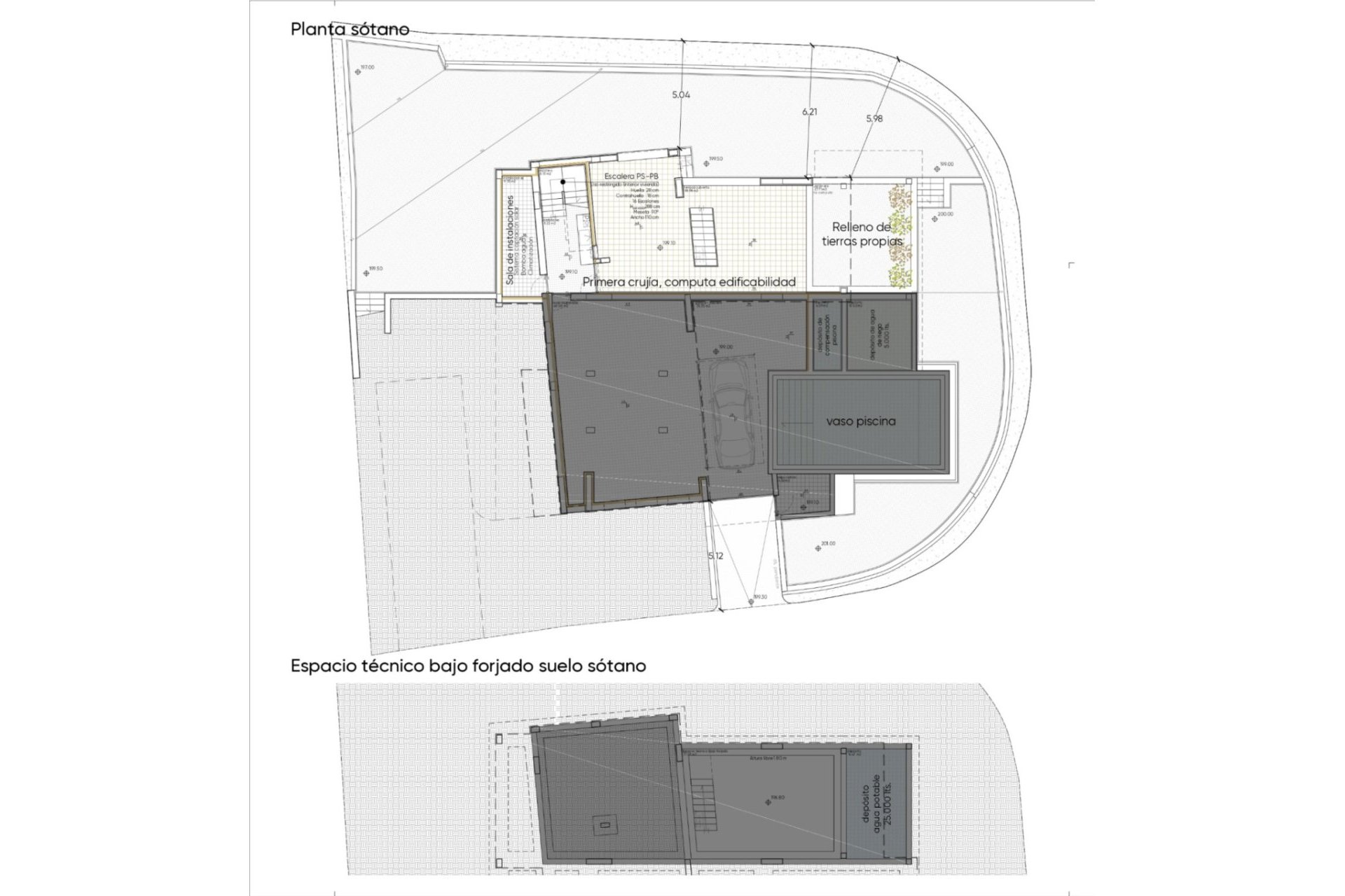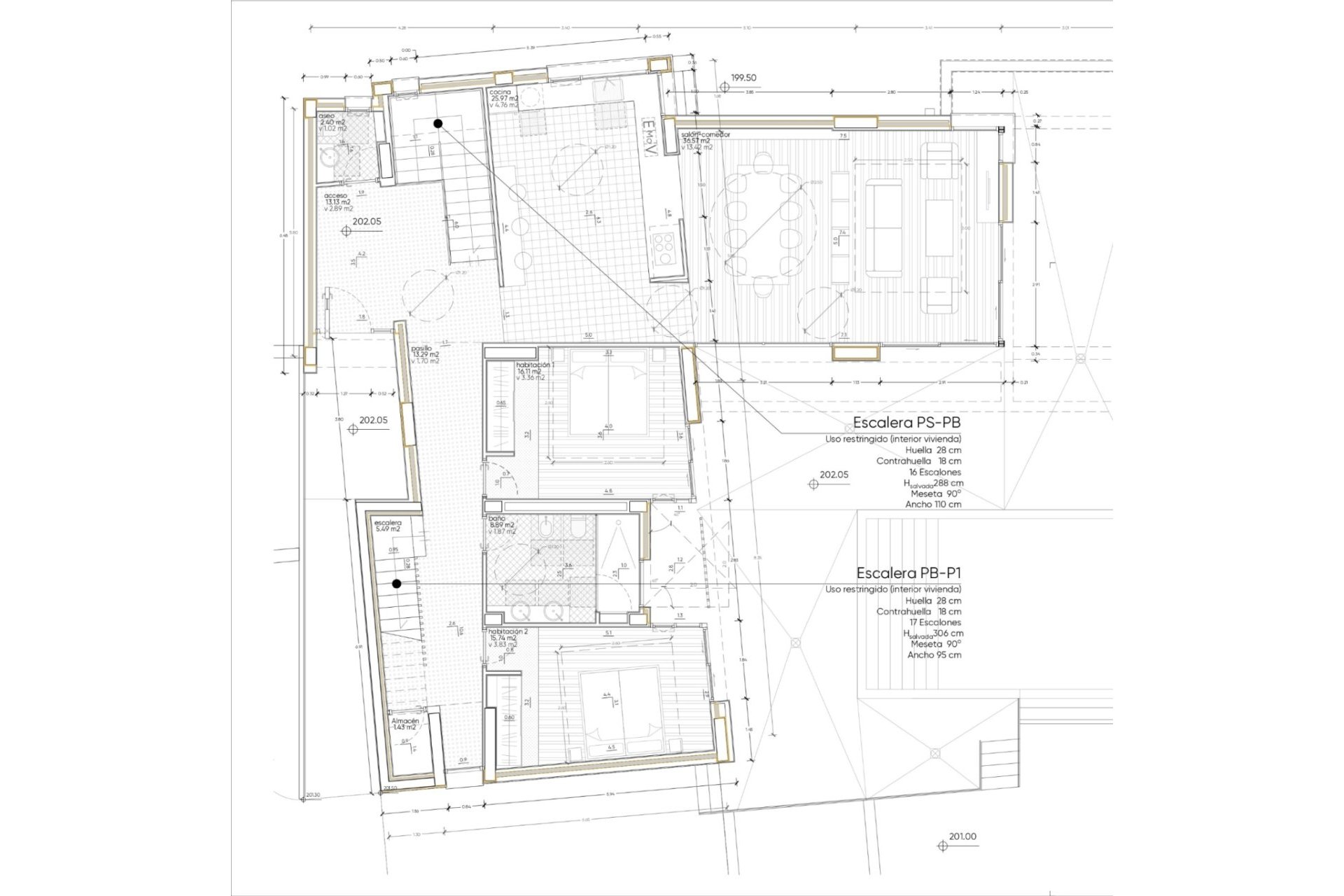 From the street there is access to the garage and an extensive interior area, which can be transformed into a fitness room, cinema, games or a second living room. This area offers endless possibilities to customize it according to your needs.