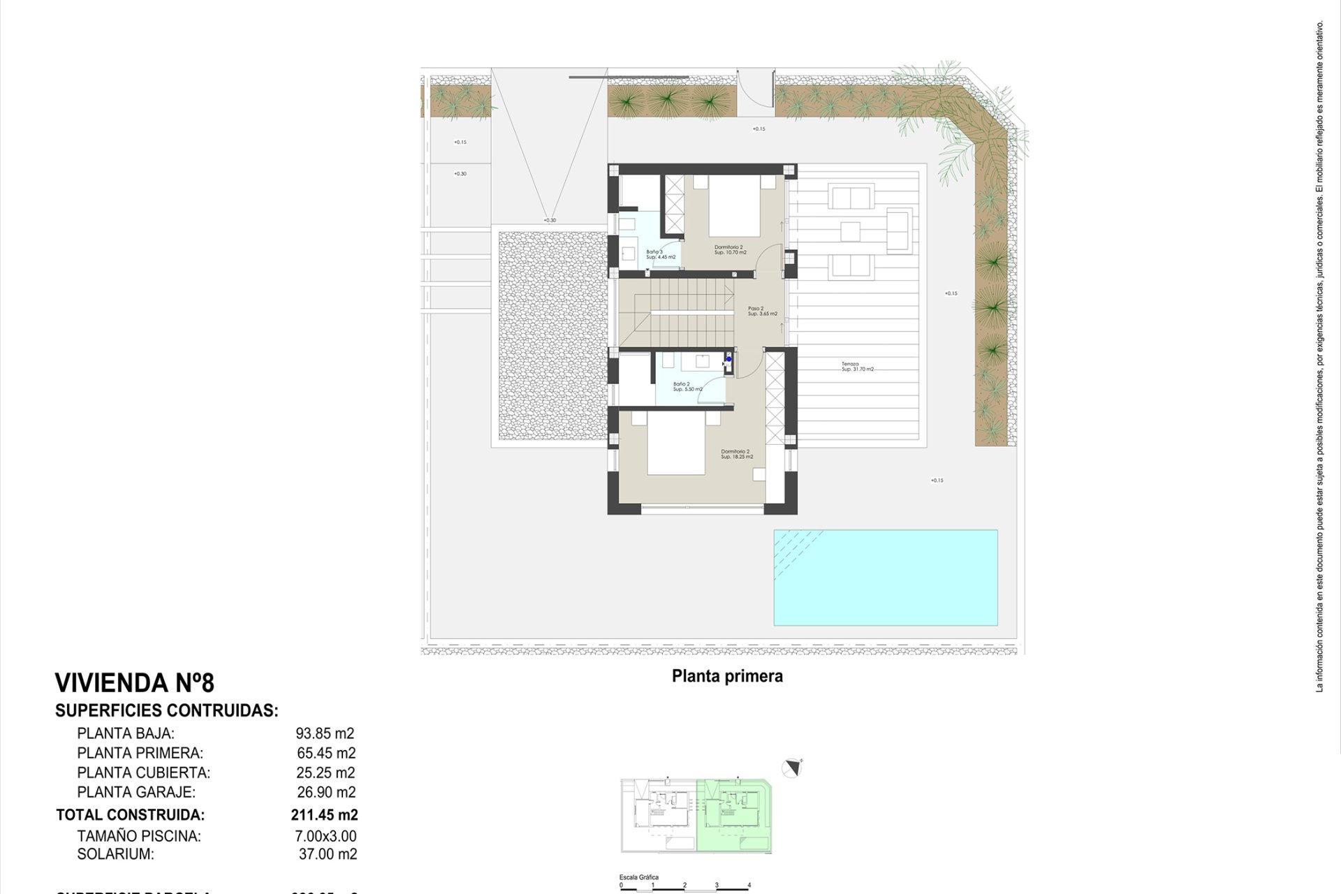 The common areas of this residential complex include a communal garage that complements the private parking of each villa. Additionally, a children's play area is available, offering a safe and fun space for the little ones.