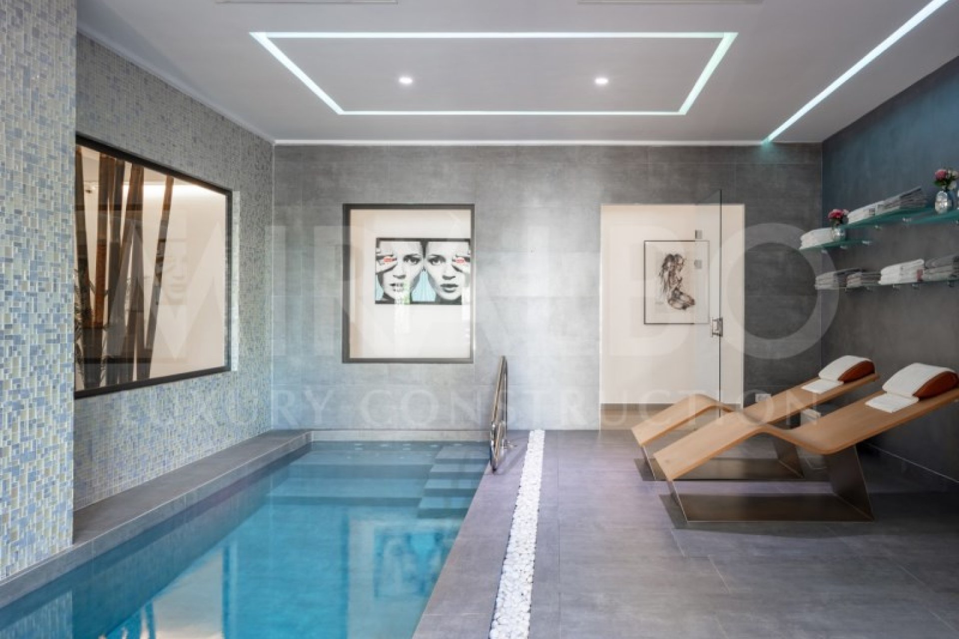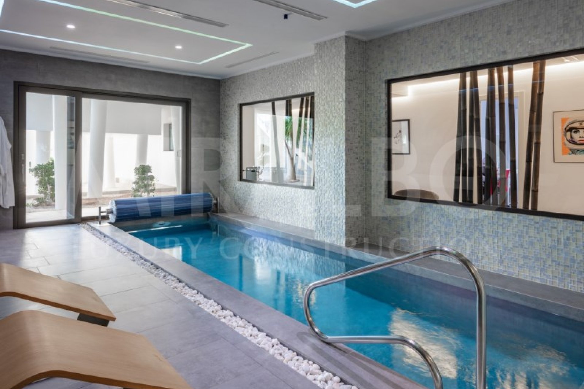 The exterior is a paradise, with a spectacular 15x4 m infinity pool, and a tennis and paddle tennis court to stay active. Inside, there is a heated indoor pool with a spa and a jacuzzi, as well as a private cinema with state-of-the-art sound technology and a cocktail bar, ideal for movie nights or exclusive celebrations, there is also a large laundry room with large built-in wardrobes. This majestic luxury villa is delivered furnished