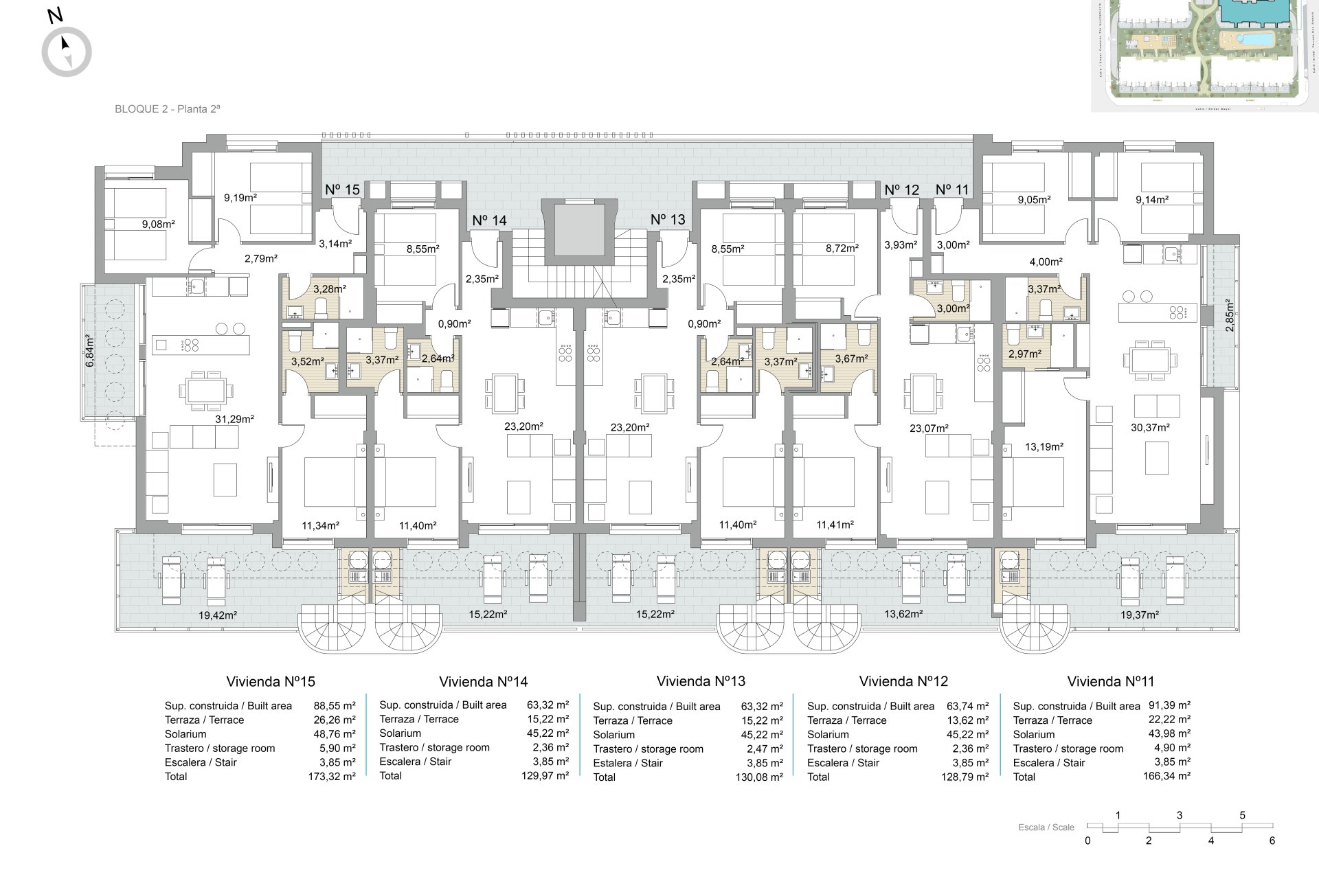 The residential complex features various common areas that enrich the living experience of its residents. The landscaped areas offer a green and tranquil environment for walking or relaxing. The communal pool is ideal for cooling off during hot summer days, while the communal jacuzzi provides a space for relaxation and well-being. Additionally, the complex includes a communal garage and parking options, ensuring convenience and security for residents' vehicles.