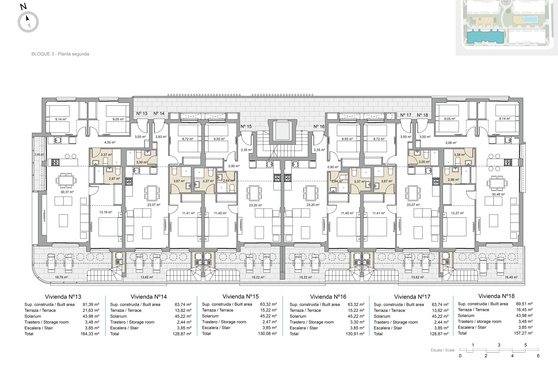 The residential complex features various common areas that enrich the living experience of its residents. The landscaped areas offer a green and tranquil environment for walking or relaxing. The communal pool is ideal for cooling off during hot summer days, while the communal jacuzzi provides a space for relaxation and well-being. Additionally, the complex includes a communal garage and parking options, ensuring convenience and security for residents' vehicles.