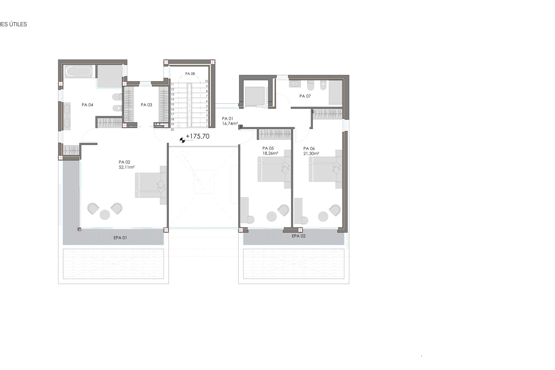 The exterior design of the villas in Golf Bahía is simply spectacular. Each property features a private garden, ideal for enjoying the outdoors and hosting family or friends gatherings. Additionally, the villas include a terrace that provides extra space to relax and enjoy the sea views. The presence of a private pool in each villa adds a touch of luxury and exclusivity, allowing residents to enjoy a refreshing swim in the privacy of their home. Access to a private garage ensures the convenience and security of residents' vehicles.