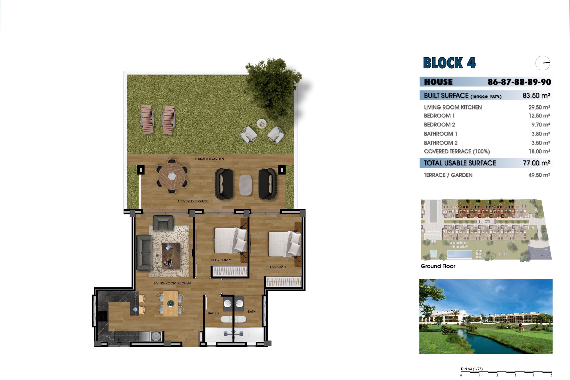 The exteriors of these homes are designed to offer an unparalleled outdoor lifestyle. Each property features a terrace, ideal for enjoying the views and the Mediterranean climate. Additionally, some types include a private solarium, perfect for relaxing under the sun. Ground-floor homes have private gardens, providing a personal green space to enjoy with family or friends. For those seeking an extra touch of luxury, some properties feature a private pool, offering a personal oasis to cool off during the warm summer days.