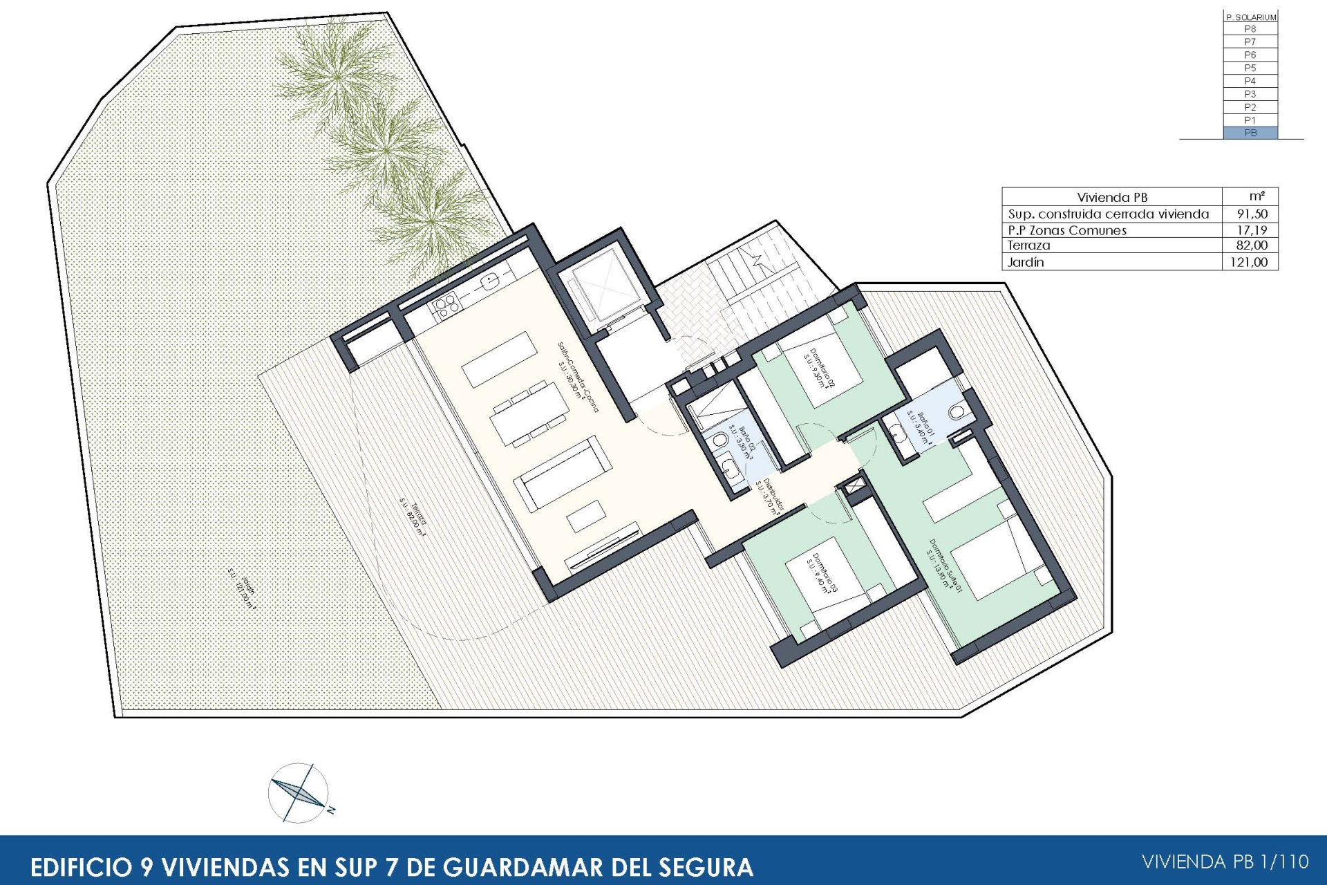2Located in the charming town of Guardamar del Segura, this residential complex offers an exclusive selection of nine properties, including apartments, ground floors, and penthouses. Each home is designed to provide maximum comfort and functionality, with a layout that includes three bedrooms and two bathrooms. The location is ideal for those looking to enjoy proximity to the sea, as it is just one kilometer from the coast, allowing for enjoyment of the beaches and Mediterranean climate. Additionally, the airport is only 30 kilometers away, facilitating access for residents and visitors.