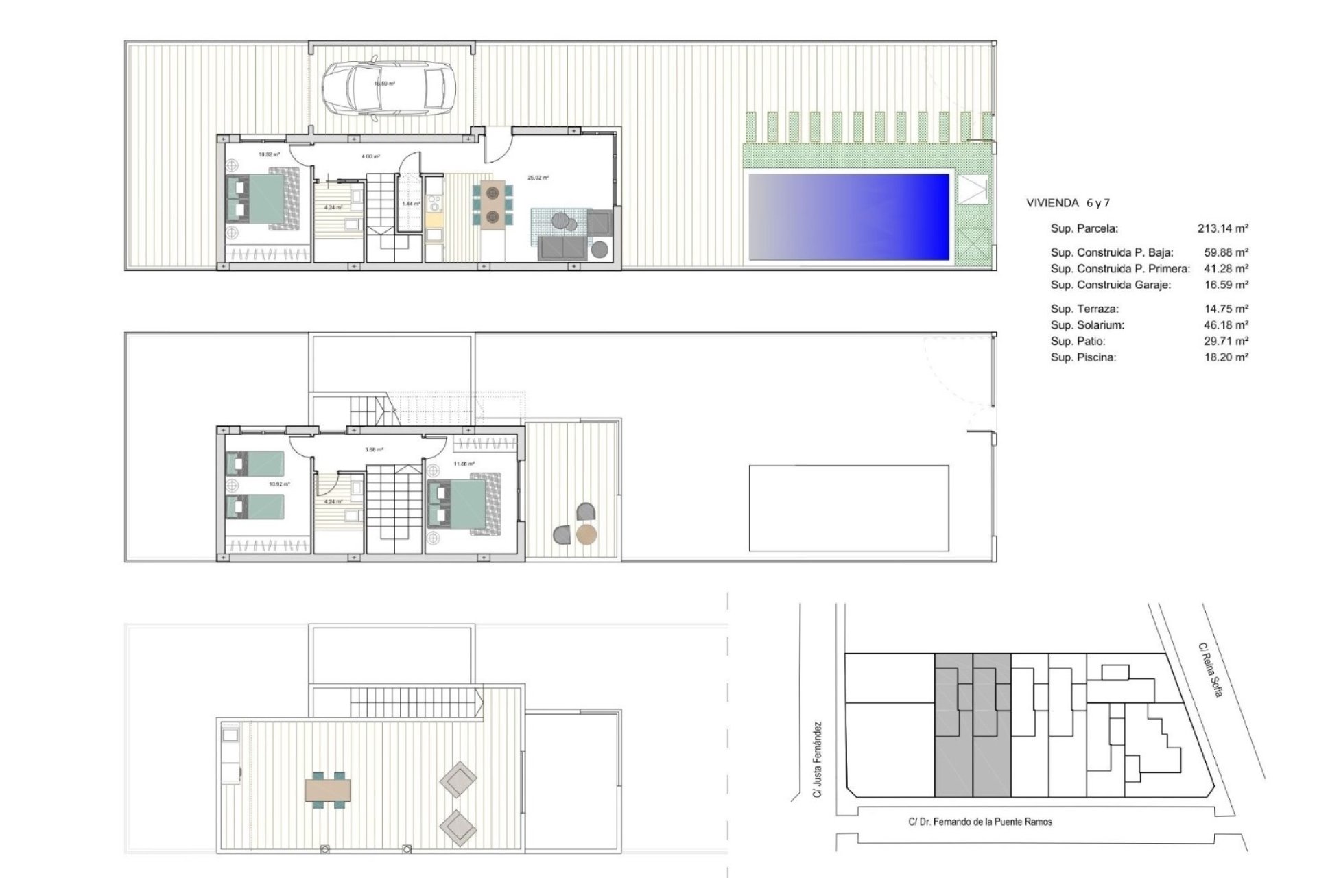 The interior of these detached homes in Los Alcázares is designed with attention to detail and functionality. Porcelain tile floors add a touch of elegance and are easy to maintain. The kitchen is equipped with modern appliances, making daily life easier. Built-in wardrobes in the bedrooms offer ample storage space, maintaining order and organization. Additionally, the homes feature pre-installation for air conditioning, ensuring comfort year-round. The layout of 3 bedrooms and 2 bathrooms is designed to offer a cozy and practical space for the whole family.