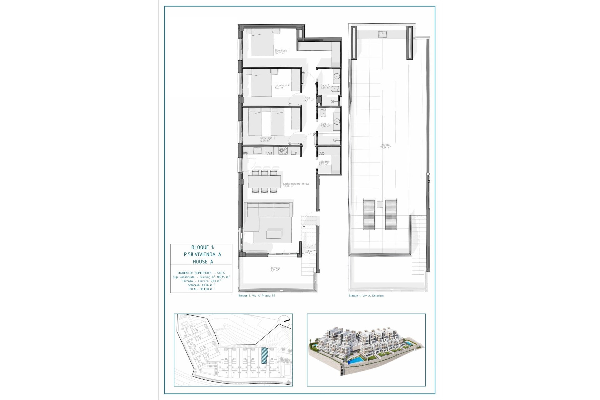 The exteriors of this residential complex are designed to offer a pleasant and functional environment. The properties feature private terraces, perfect for enjoying the Mediterranean climate and outdoor moments. Additionally, some typologies include private gardens, providing extra space for leisure and relaxation. The presence of a solarium in certain homes allows for panoramic views and sun enjoyment year-round. Access to a private garage ensures convenience and security for residents' vehicles. This set of exterior features makes each home a personal and welcoming retreat.