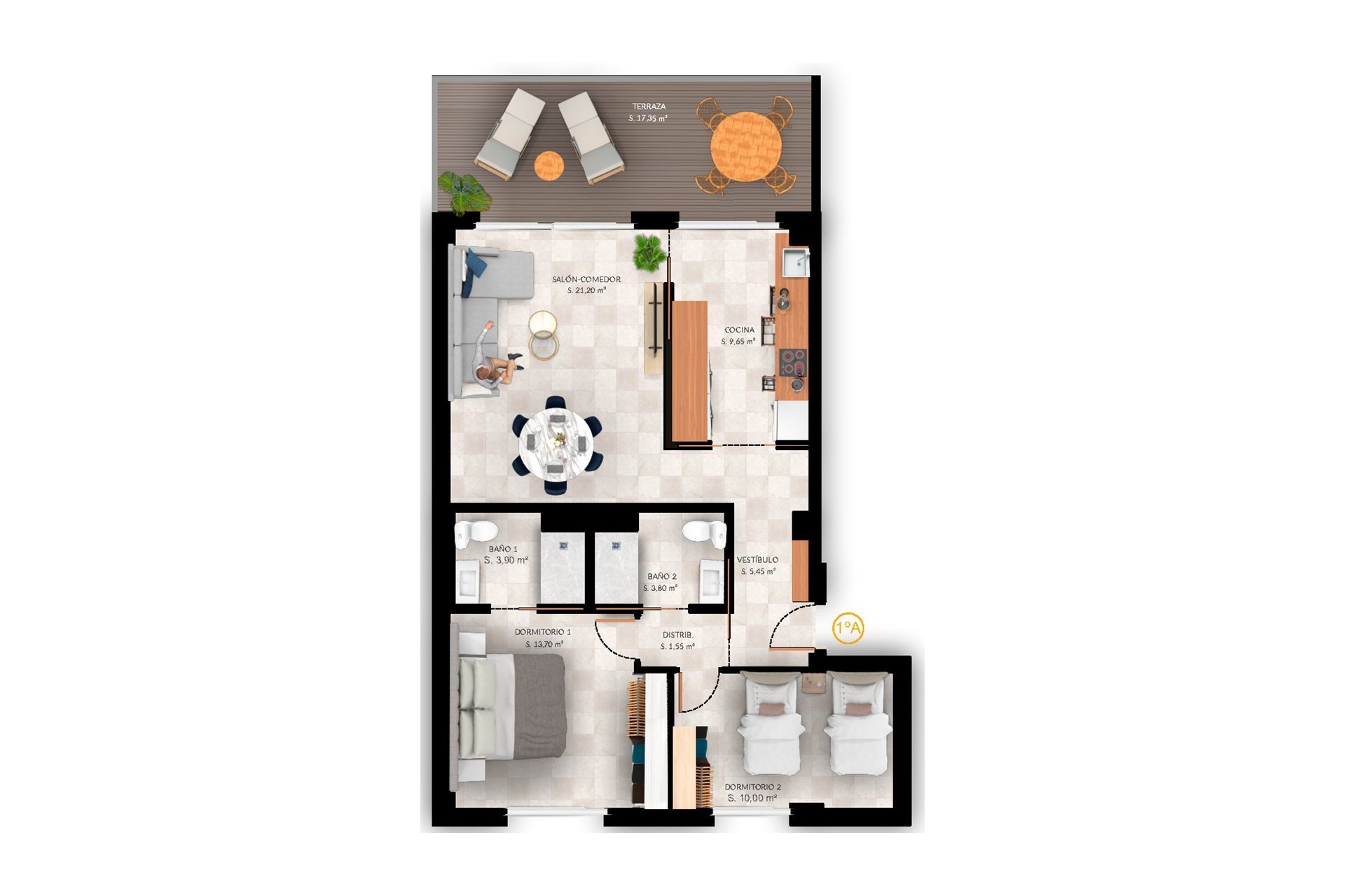 The homes feature outdoor spaces that invite relaxation and enjoyment of the Mediterranean climate. Each property has a terrace and solarium, perfect for sunbathing or enjoying an outdoor dinner. Additionally, some types offer the possibility of having a private garden, expanding leisure and recreation options. The option of a private pool is available, allowing residents to enjoy a refreshing swim in the privacy of their home.