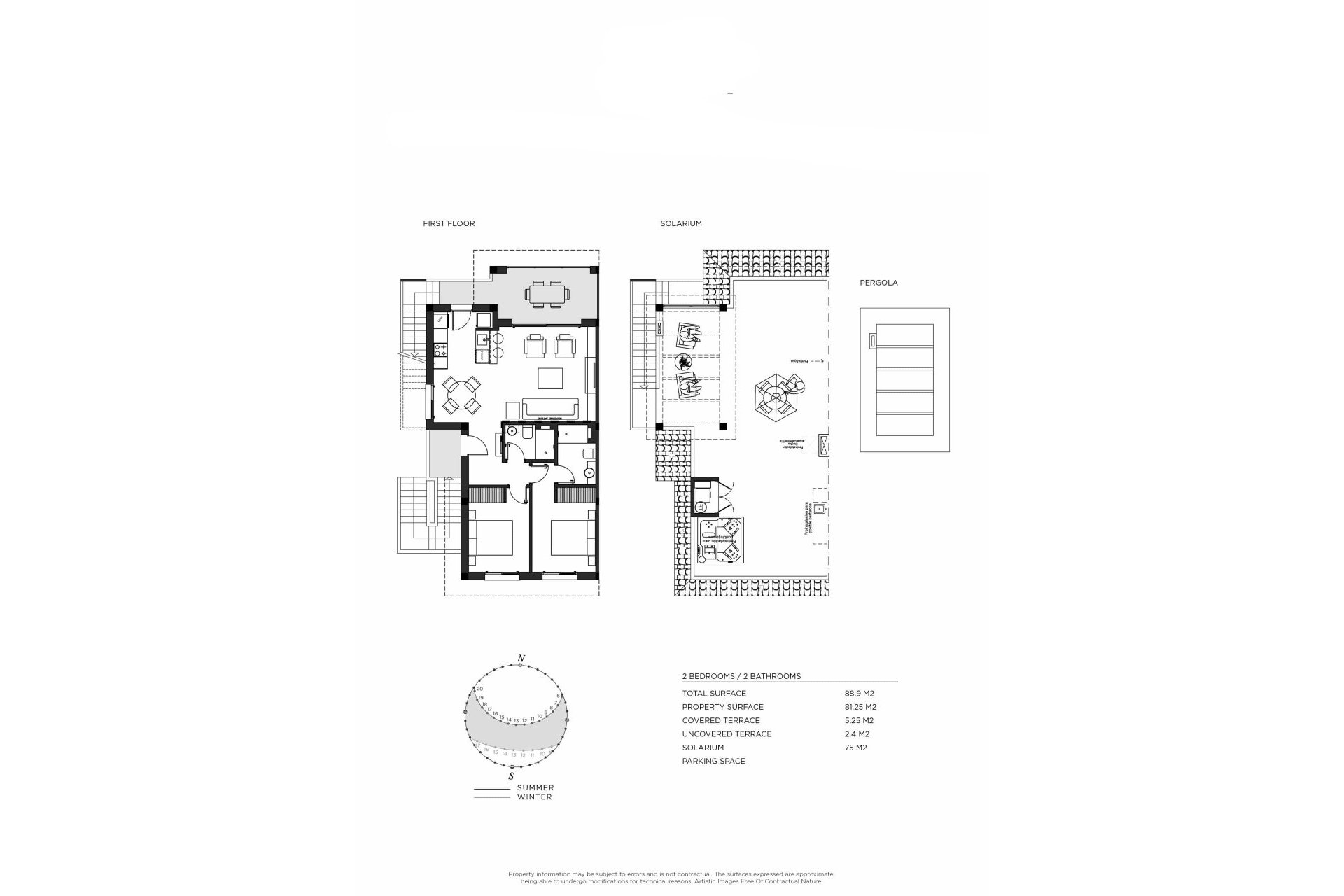 The exteriors of these homes are designed to offer a space for relaxation and outdoor enjoyment. Each bungalow features a private garden, perfect for enjoying the Mediterranean climate. Additionally, the terraces and solariums provide extra leisure space, allowing residents to enjoy unobstructed views and moments of tranquility. The presence of pergolas adds a touch of elegance and functionality, offering shade and style to the outdoor spaces.
