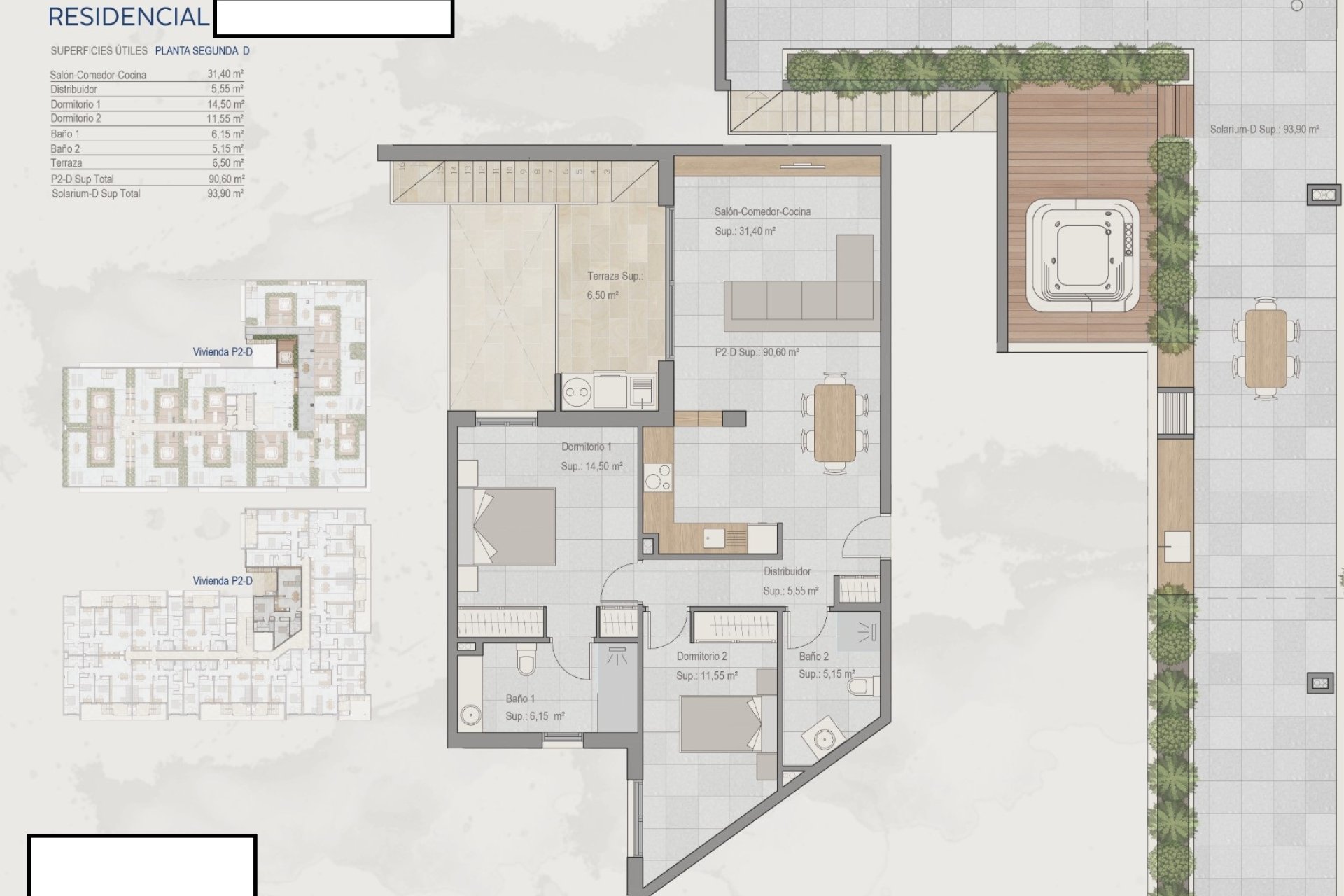 The interiors of the homes are designed to offer a cozy and functional environment. The apartments and penthouses come equipped with modern appliances, facilitating daily tasks. Ceramic floors add an elegant touch and are easy to maintain. Built-in wardrobes optimize storage space, maintaining order and aesthetics. Additionally, some properties feature a jacuzzi, adding a touch of luxury and relaxation to the home. The layout includes 2 or 3 bedrooms and 2 bathrooms, adapting to different family needs.