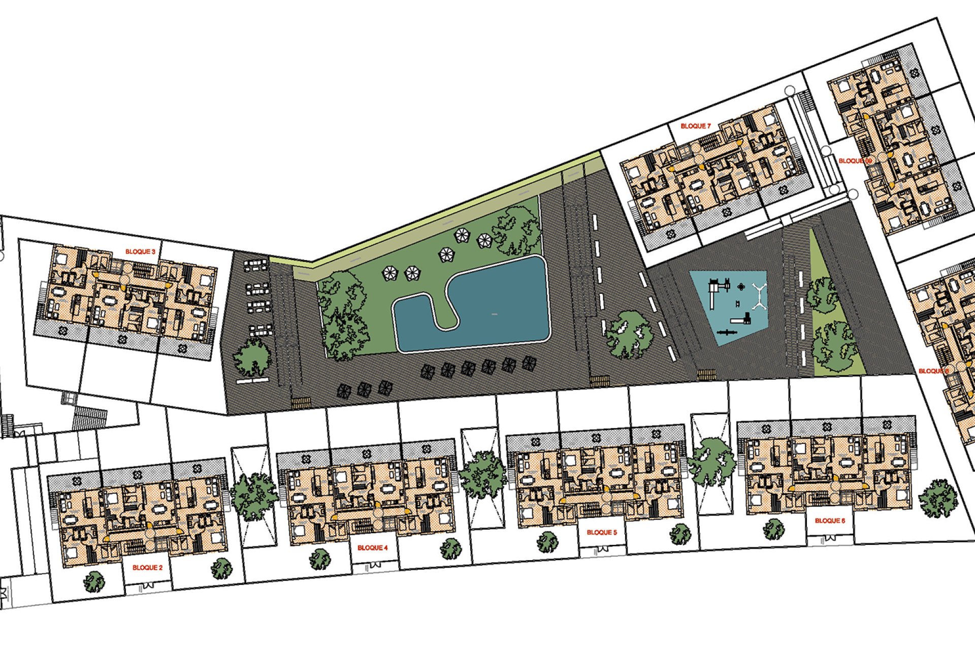 El interior de las viviendas está cuidadosamente diseñado para ofrecer confort y funcionalidad. Los suelos de gres porcelánico aportan un toque de elegancia y son fáciles de mantener. Las viviendas disponen de dos dormitorios y dos baños, ofreciendo un espacio cómodo para familias o parejas. La distribución incluye una cocina equipada con electrodomésticos modernos, asegurando que cada detalle esté pensado para facilitar la vida diaria.